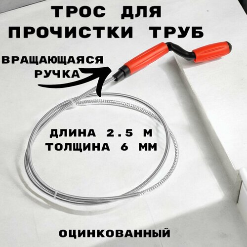 Трос сантехнический оцинкованный с вращающейся ручкой диаметр 6 мм, длина 2.5 метра