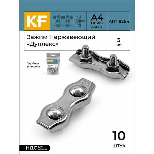 Зажим для троса KREPFIELD "дуплекс" ART 8284 A4, нержавеющая сталь, диаметр 3 мм, 10 штук