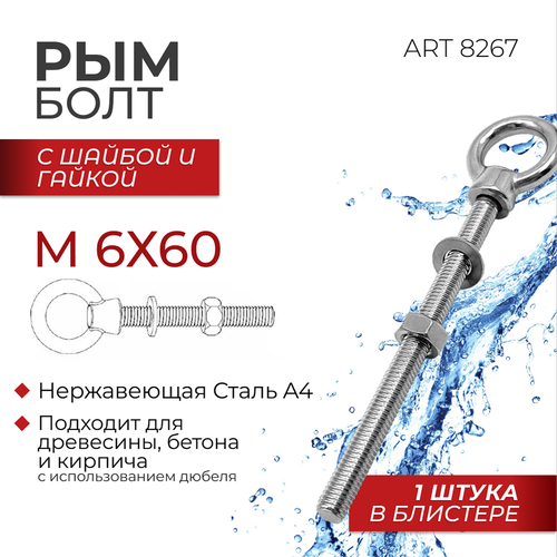 Рым-болт FIXATOP, M 6х60 мм нержавеющая сталь A4, ART 8267, 1 шт