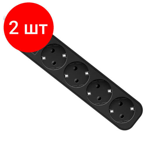 Комплект 2 шт, Удлинитель Defender G450, 4 розетки, с заземлением, выключатель, 5м