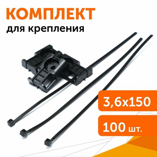 Комплект крепления: площадка для прямого монтажа черная со стяжкой 3,6х150 мм, 100 шт/уп