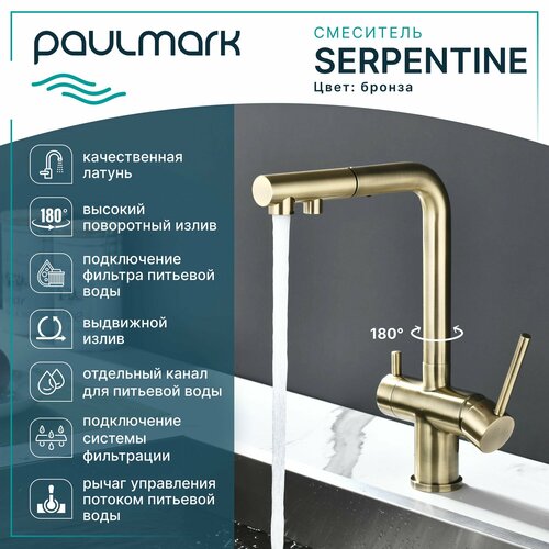 Смеситель для кухни с выдвижным изливом Paulmark SERPENTINE, с подключением фильтра питьевой воды, Se213222-BR