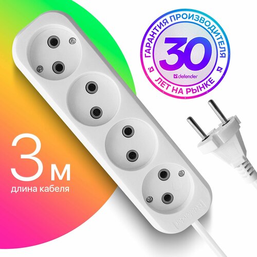 Удлинитель сетевой Defender 4 розетки , 3 м