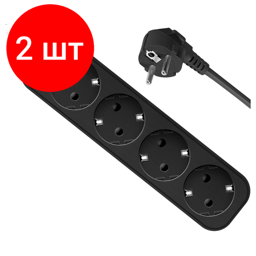 Комплект 2 шт, Удлинитель Defender M430, 4 розетки, с заземлением, 3м