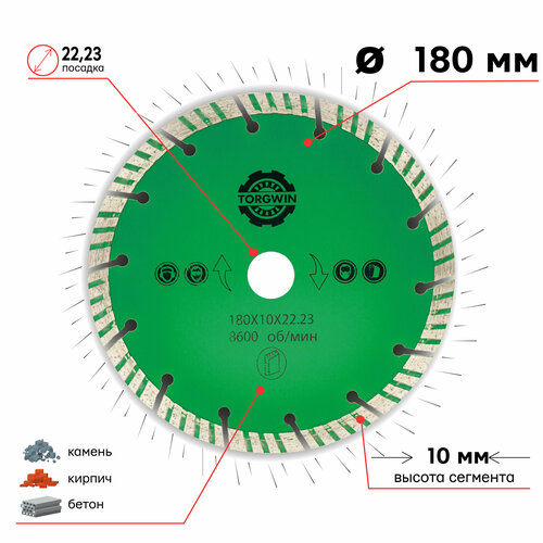 Диск алмазный турбо сегмент 180 х 10 х 22,23 мм (широкий сегмент) TORGWIN 106AG-TG18022ТС