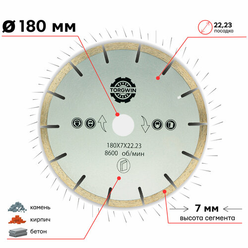 Диск алмазный сегментный 180 х 7 х 22.23 мм TORGWIN T902267