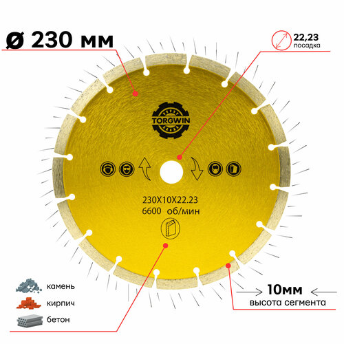 Диск алмазный сегментный HOT PRESS 230 х 10 х 22.23 мм TORGWIN T567094