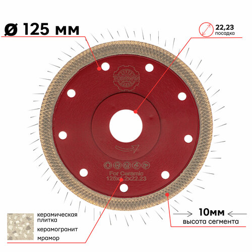 Диск алмазный 125 x 1.2 x 22.23 мм тонкий TURBO тип "Ромб" TORGWIN T657948