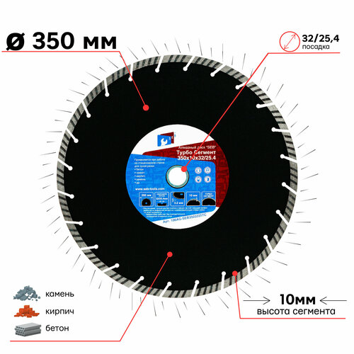 Диск алмазный турбо сегмент 350 х 10 х 32 (25,4) мм (широкий сегмент) S11292