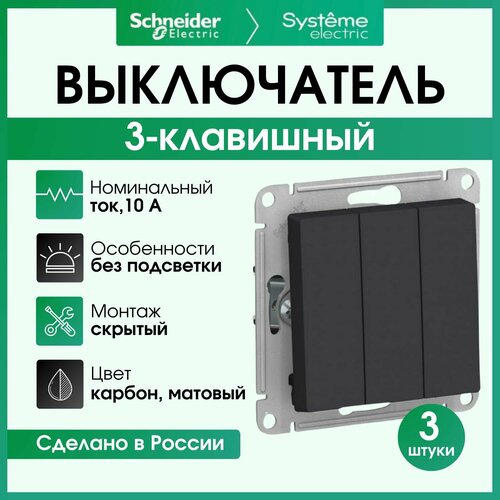 Выключатель трехклавишный Schneider Electric Atlas Design карбон ATN001031 3 штуки
