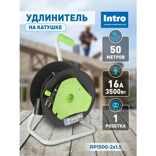 Удлинитель электрический на катушке 50 метров 1 розетка без заземления ПВС 2x1.5мм2
