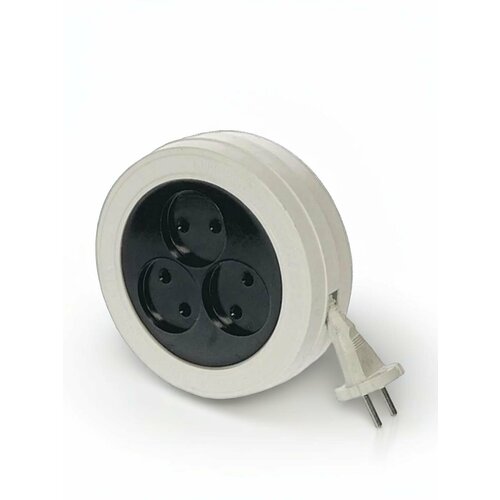 Удлинитель-рулетка, сетевой фильтр с заземлением, 3 розетки, 5 м / белый
