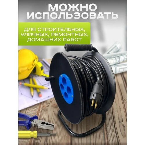 Удлинитель на катушке 50 м силовой уличный на 4 розетки электрический 2х1.5 белый, коричневый, желтый, черный, бесцветный, бежевый, серый