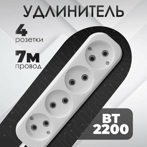 Удлинитель 7 метров, сетевой фильтр без заземления