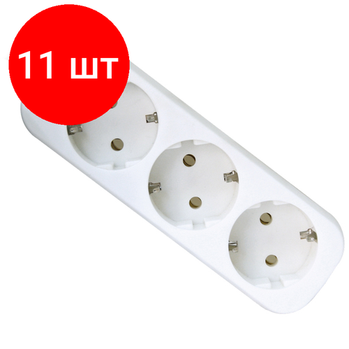 Комплект 11 шт, Удлинитель Defender E318, 3 розетки, с заземлением, 1.8м