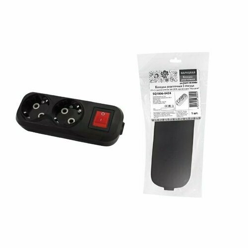 Колодка розеточная TDM Народная 2 гнезда, 2П+3, c заземлением и выключателем, черная