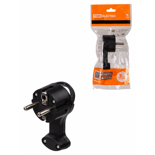 Вилка круглая плоская с кольцом черная 16А 250В TDM