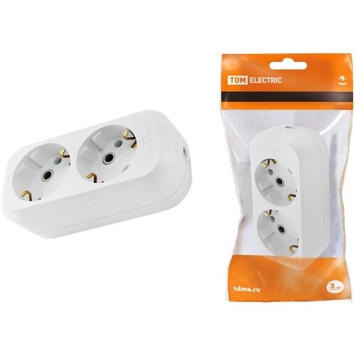 Колодка розеточная 2 гнезда 2П+З 16А 250В белая, TDM SQ1806-0015 (20 шт.)