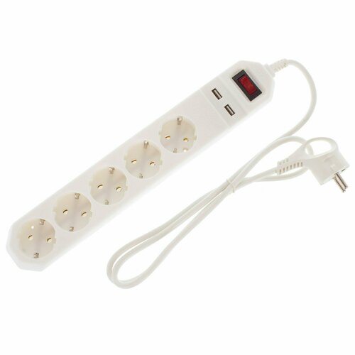 Сетевой фильтр USF 5 розеток USB 1.5 м цвет белый