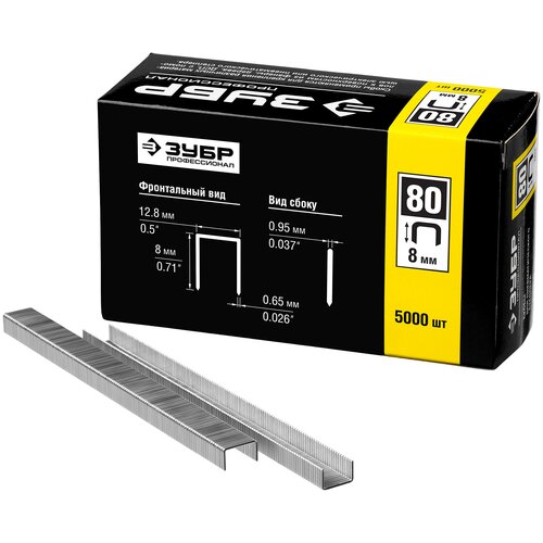 Скобы особотвердые тип 80 профессионал (5000 шт: 8 мм) ЗУБР 31880-08 15886167