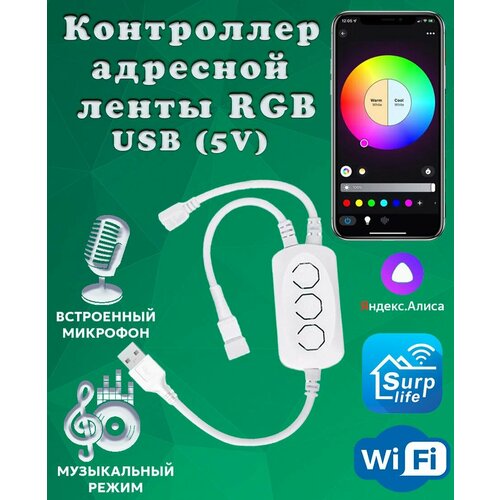 Умный WIFI контроллер LDL48 для адресной (цифровой, трёхконтактной) светодиодной ленты 5 В. Управление Пульт ДУ, Яндекс. Алиса, Surplife
