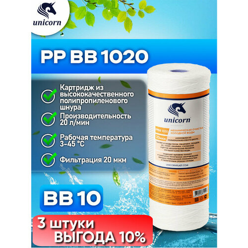 Картридж Unicorn 10BB, РS 1001 применяется для механической очистки холодной воды. Удаляет из воды песок, ржавчину, осадок, ил, гли...