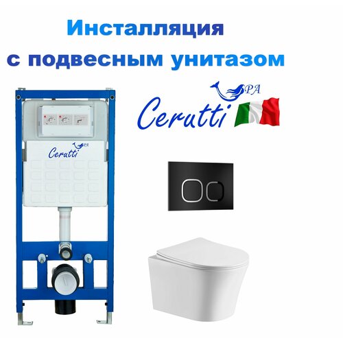Комплект 4 в 1 инсталляция с подвесным унитазом Cerutti SPA Ami Aria, сиденье микролифт, кнопка смыва черная(CR556+CT8780+CR01BK)