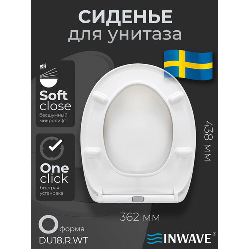 Сиденье стульчак для унитаза с микролифтом INWAVE DU18. R. WT из дюропласта, размер 43*36*3 см