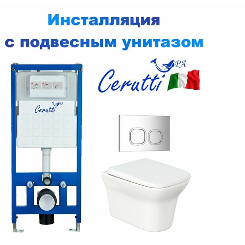 Комплект 4 в 1 инсталляция с подвесным унитазом Cerutti SPA Vettore Aria, сиденье микролифт, кнопка смыва хром (CR556+CT7190+CR05CH)