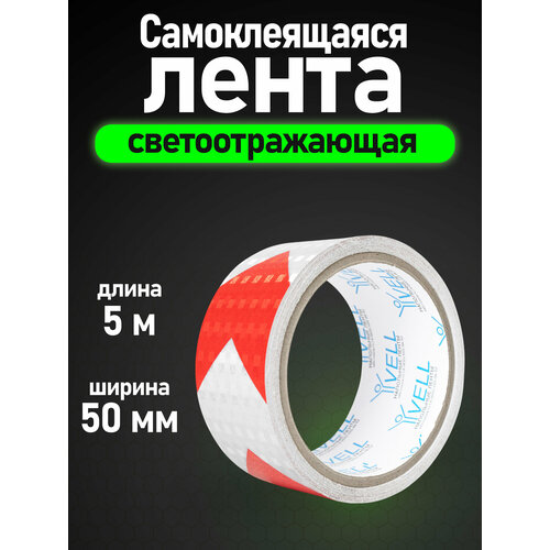 Светоотражающая/сигнальная лента Vell, бело-красная RT, стрелка, 50 мм х 5 м (1376493)