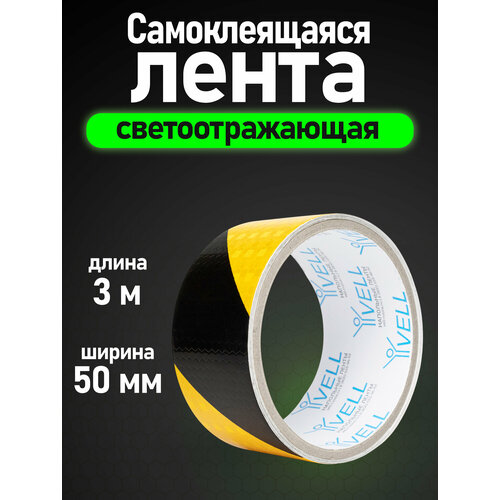 Светоотражающая/сигнальная лента Vell, желто-черная RT, диагональная, 50 мм х 3 м (1376504)