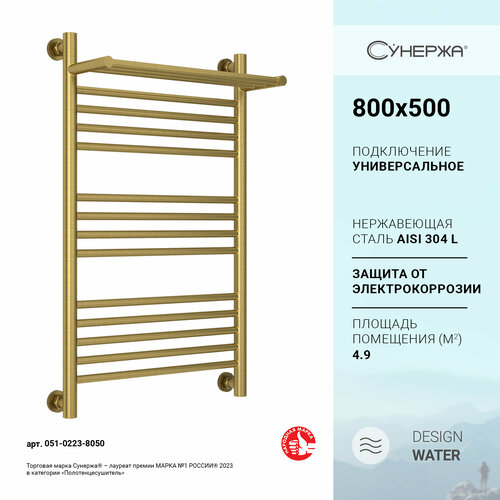 Водяной полотенцесушитель Сунержа Богема с полкой+, с креплением, внутреннее полимерное покрытие, состаренная латунь