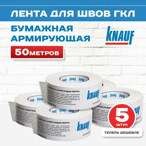 Лента для швов ГКЛ армирующая 5 шт бумажная, перфорированная KNAUF 50м