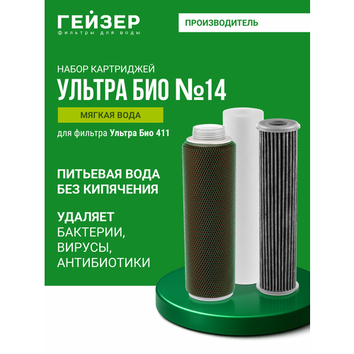 Комплект картриджей Гейзер №14, для мягкой воды, 100% удаление бактерий и вирусов, для Ультра Био 411, 50075