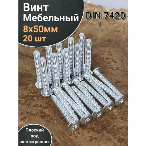 Винт мебельный 8х50 плоский под шестигранник DIN7420,20 шт
