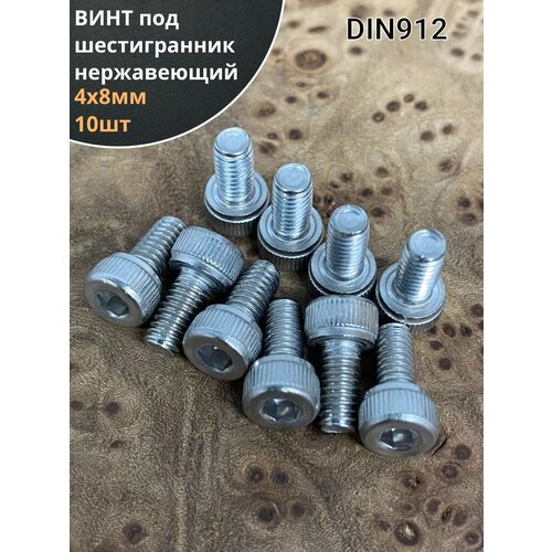 Винт нержавеющий шестигранник М4х8, DIN 912, 10 шт