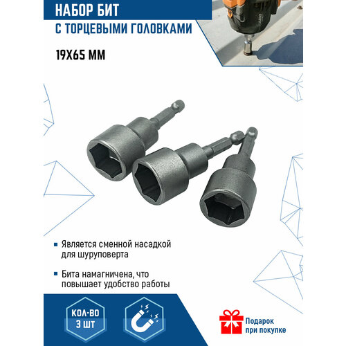 Набор бит с торцевыми магнитными головками 19x65, 3 шт.