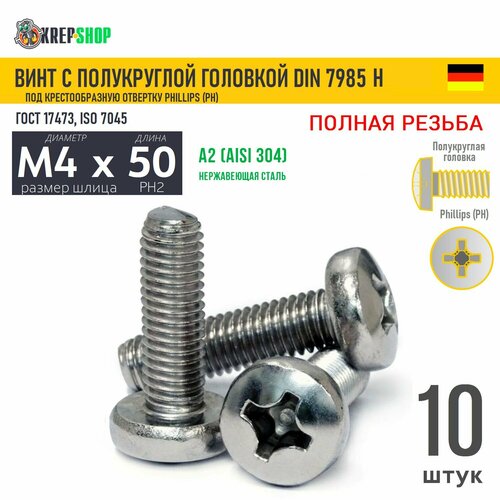 Винт п/кр M4х50 под крест нерж. А2 DIN 7985 H, 10 шт