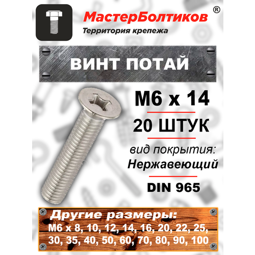 Винт потай M6х 14 нержавеющий А2 DIN 965 (20 штук)