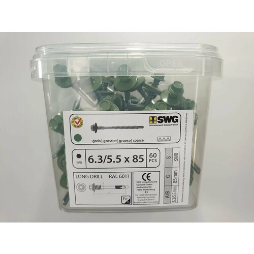 Саморез для сэндвич панелей RAL 6011 6.3l5.5x85 (60 pcs) длинный бур SWG, Германия