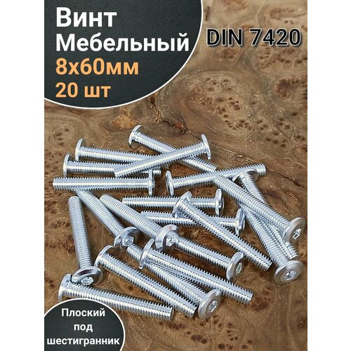 Винт мебельный 8х60 плоский под шестигранник DIN7420,20 шт