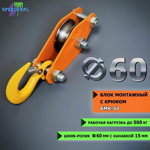 Блок монтажный спецдеталь с крюком ф60 мм для подъема грузов