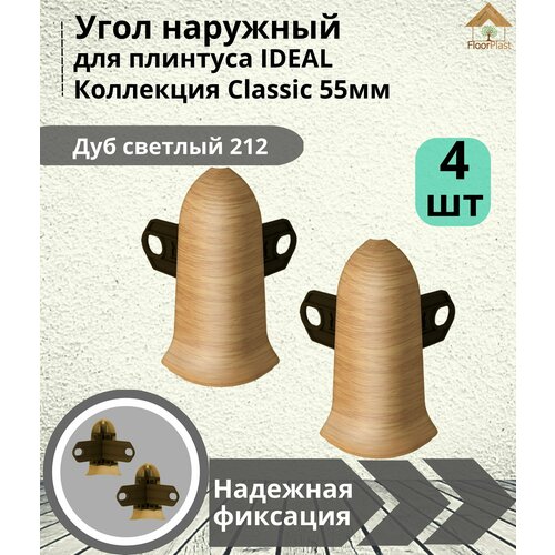 Угол наружный (внешний) для плинтуса Ideal (Идеал), коллекция Classic (Классик) 55мм, 212 Дуб светлый - 4шт.