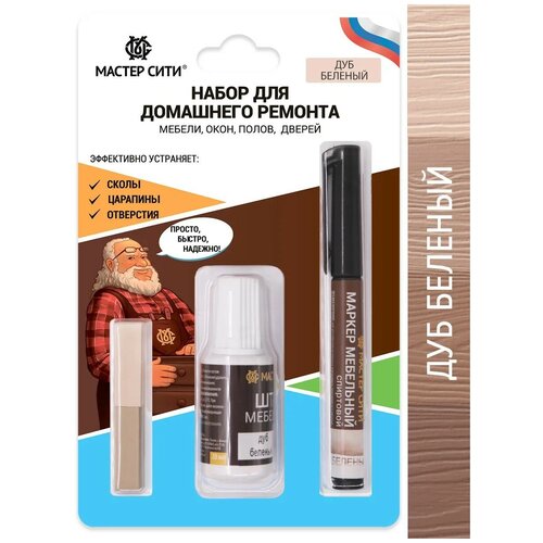Набор для реставрации мебели, воск/штрих/маркер, Дуб беленый