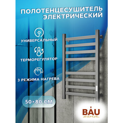 Полотенцесушитель электрический профильный BAU В81/10 Gun Grey 50х80, темно-серый металлик с таймером, универсальное подключение