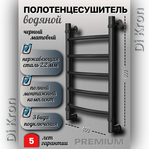 Полотенцесушитель Водяной узкий матовый Di Kron, модель Premium-D 600х400, 3 вида подключения, нержавеющая сталь