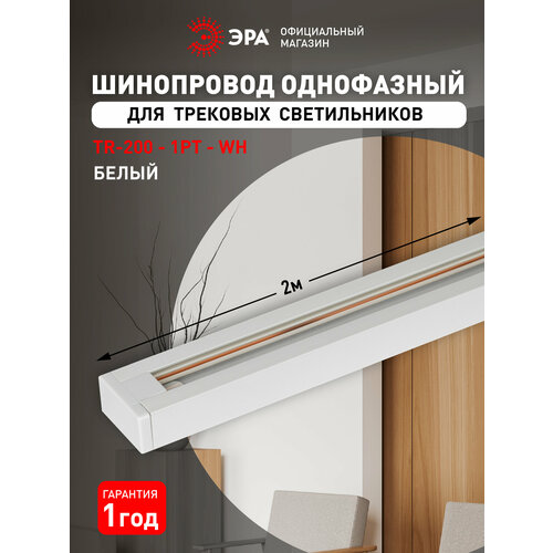 Шинопровод ЭРА TR-200-1PT-WH трековый осветительный однофазный / Шина потолочная для светильников 2 метра, белая