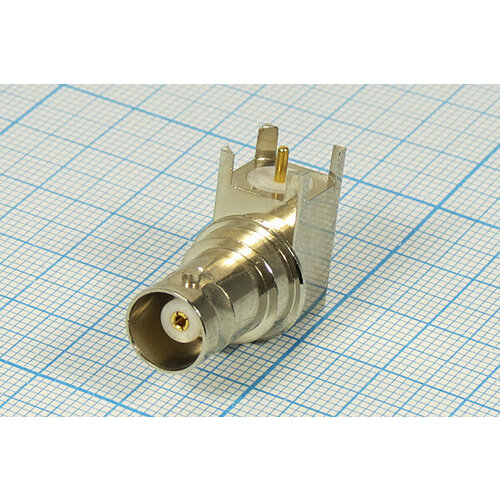 Разъем высокочастотный BNC розетка, 1P4C, на плату, h18.6mP10x10, угловой