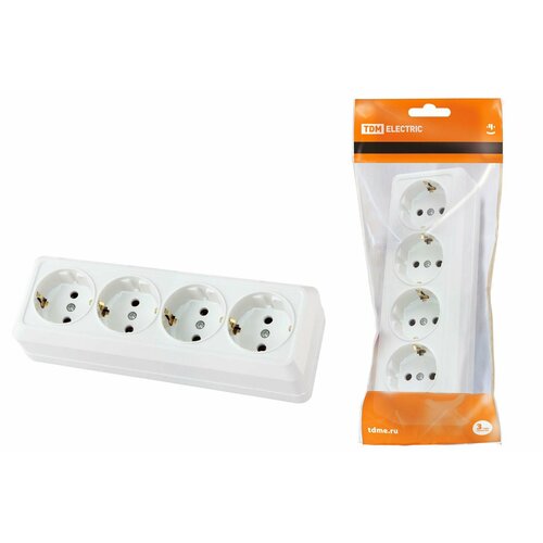 Розетка TDM Electric Ладога с заземлением четырехместная белая для открытой проводки