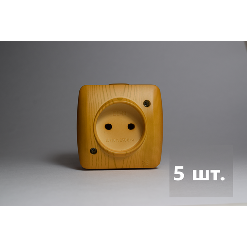 Розетка наружная одинарная без заземления, керамика, цвет: ольха, 5 штук